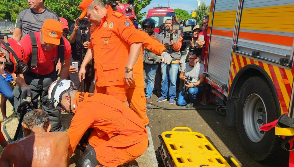 “Recebemos informações de que o homem entrou no bueiro para se esconder, pois achava estar sendo perseguido. Quando chegamos ao local, ele estava agressivo e não permitia aproximação das nossas equipes de bombeiros”, relatou o subcomandante-geral do CBMAM, coronel Reinaldo Menezes.