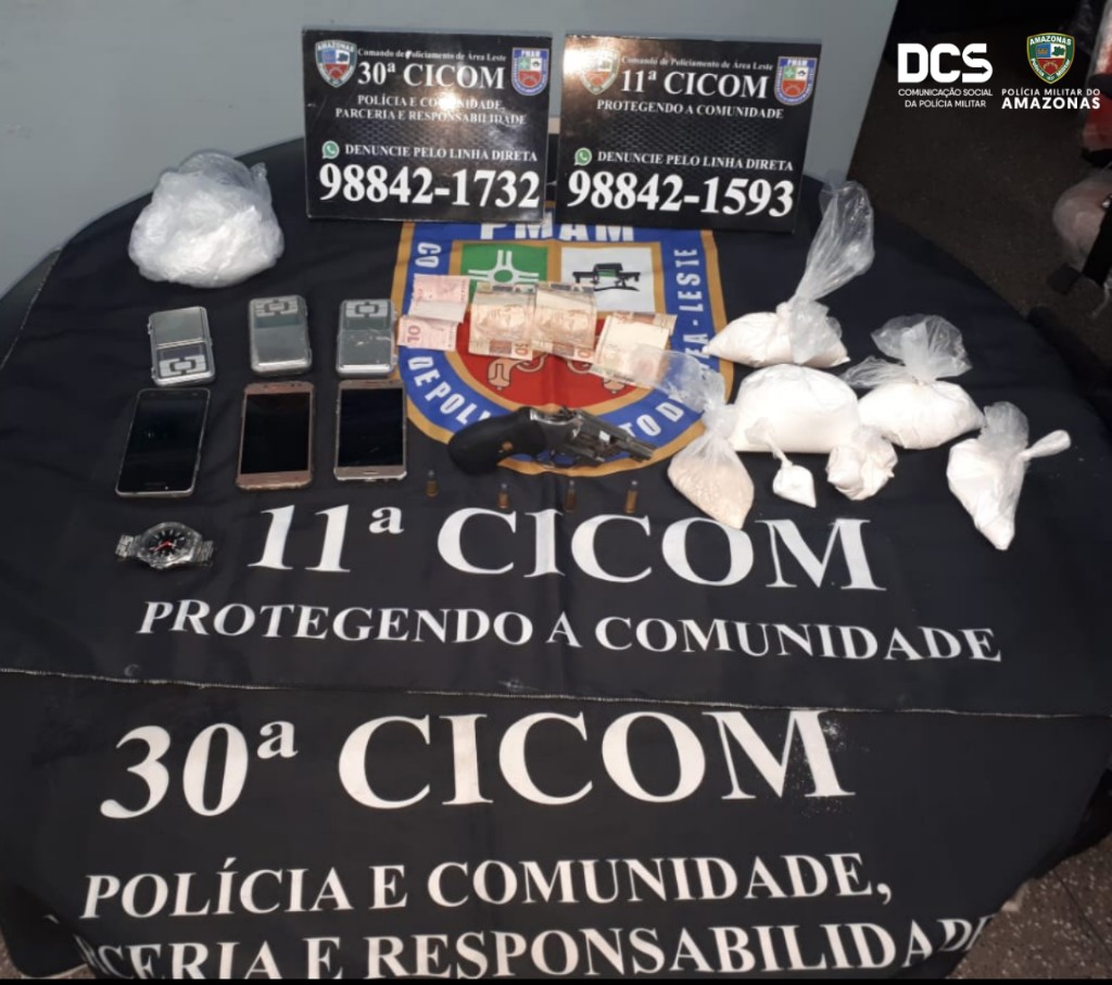 Policiais da 30ª e 11ª Companhia Interativa Comunitária (Cicom), em diferentes ocorrências na noite de sábado (26/12), efetuaram a prisão de dois homens, de 18 e 20 anos, envolvidos com o tráfico de drogas no bairro Coroado, na zona leste. Com os suspeitos foram encontradas sete porções de entorpecentes, uma arma de fogo, quatro munições intactas, duas balanças de precisão e R$ 160 em espécie. Os envolvidos foram conduzidos ao 14° Distrito Integrado de Polícia (DIP).
