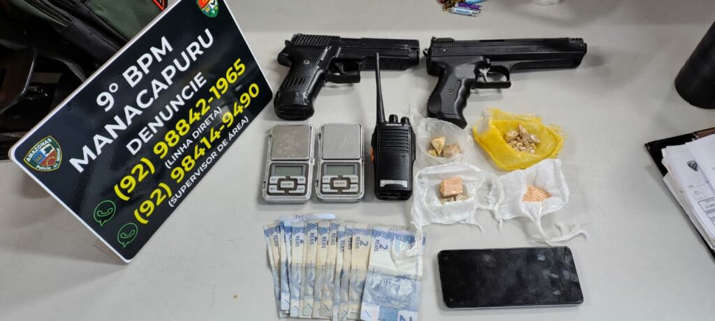 E os Policiais militares da Força Tática, durante patrulhamento por volta das 16h, no beco Tiradentes, bairro Japiim, identificaram dois homens em atitude suspeita. A dupla tentou fugir, mas foi capturada com duas porções de maconha, uma balança de precisão, R$ 100 em espécie e dois aparelhos celulares.