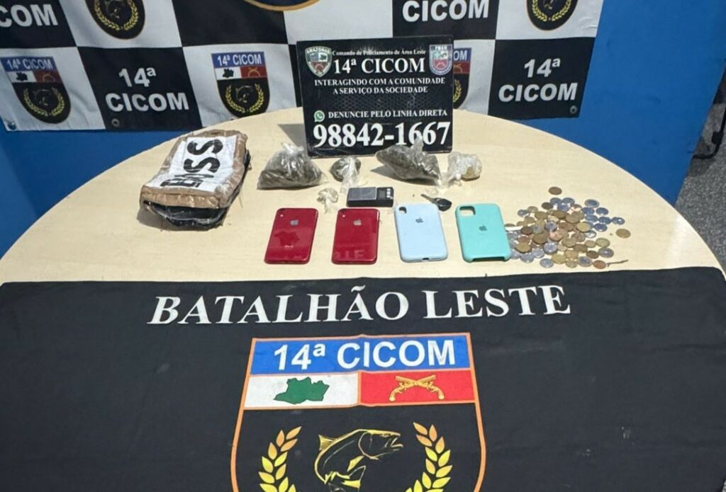 A Polícia Militar do Amazonas (PMAM), em ações entre a tarde e noite de terça-feira (13/05), prendeu sete adultos e apreendeu dois adolescentes, suspeitos de envolvimento com tráfico de drogas, nas zonas norte, leste e oeste da capital e resultaram na apreensão de mais de 170 porções de entorpecentes de diversos tipos, incluindo maconha, cocaína, oxi, haxixe, êxtase e drogas sintéticas, além de balanças de precisão, celulares e mais de R$1400 em espécie.