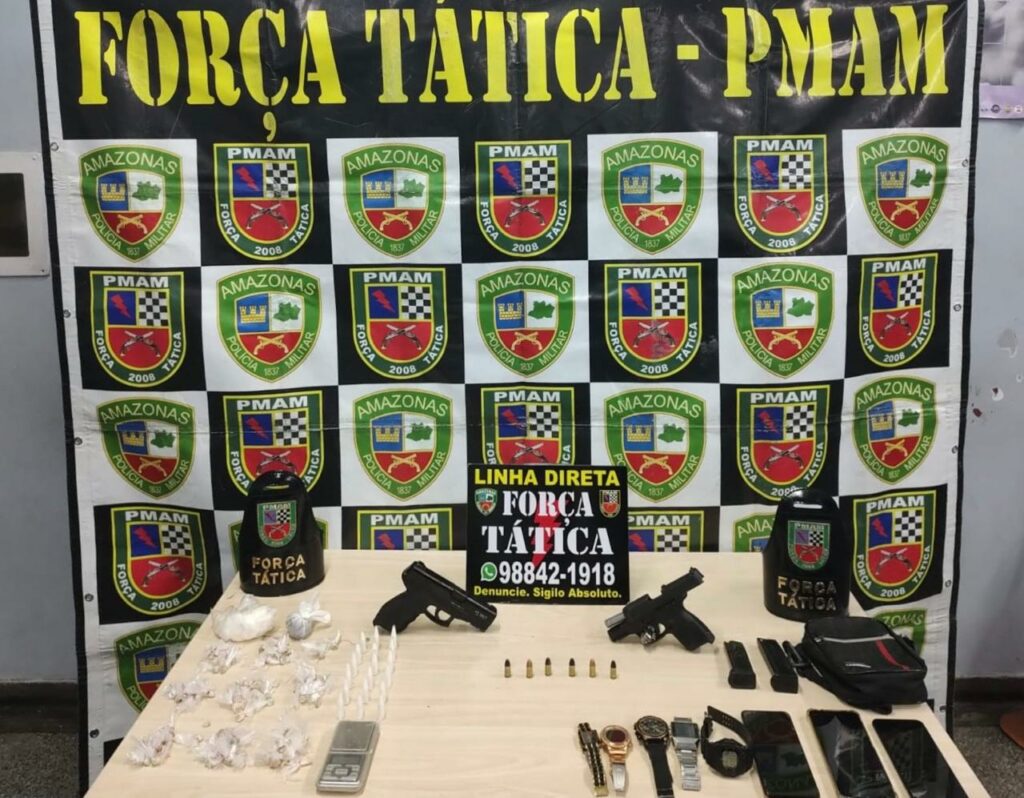 A Polícia Militar do Amazonas (PMAM), por meio da Força Tática, prendeu três homens, de 22, 32 e 39 anos, e apreendeu duas armas de fogo, um simulacro e porções de entorpecentes, em ações na terça-feira (21/01) e na quarta-feira (22/01), nas zonas leste e norte de Manaus.