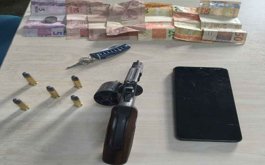 Durante a abordagem, a equipe policial encontrou um revólver calibre 38, com cinco munições; alguns objetos pessoais e R$ 137,50 em espécie. O suspeito foi encaminhado ao 6° DIP e autuado em flagrante pelo crime.
