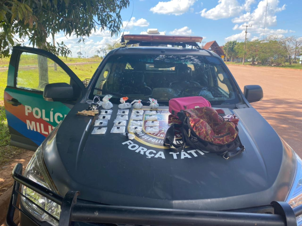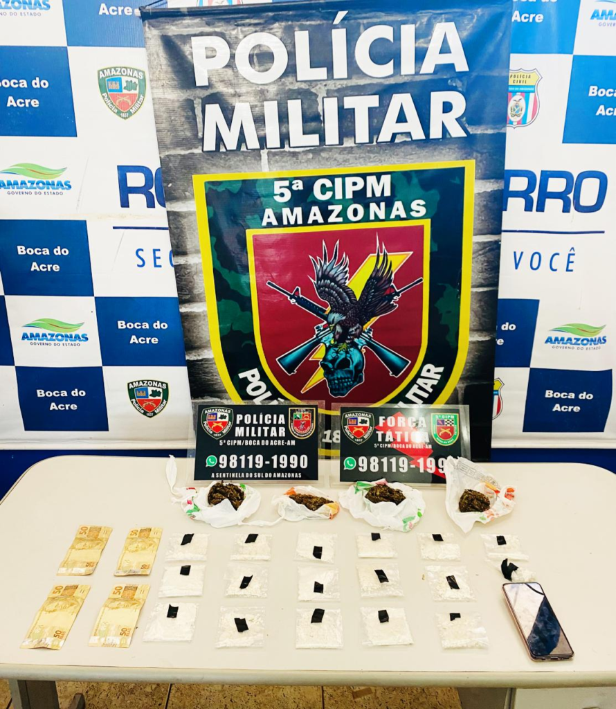 Ao todo, foram apreendidos quatro porções de entorpecente, cerca de 180 gramas, semelhantes a maconha tipo skunk, 16 pacotes com 250 gramas de substância com características de pasta base de cocaína, dois aparelhos celulares e R$ 200 em espécie.