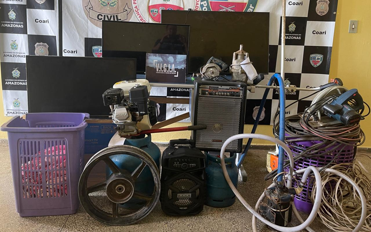 “Há cerca de uma semana, Ralison havia subtraído diversos objetos de residências do município. Após sua prisão, conseguimos identificar os receptadores e recuperar três televisores smart, duas makitas (ferramentas elétricas), duas botijas de gás de cozinha, duas bombas sapo, caixas de som e um motor rabeta”, disse o delegado.