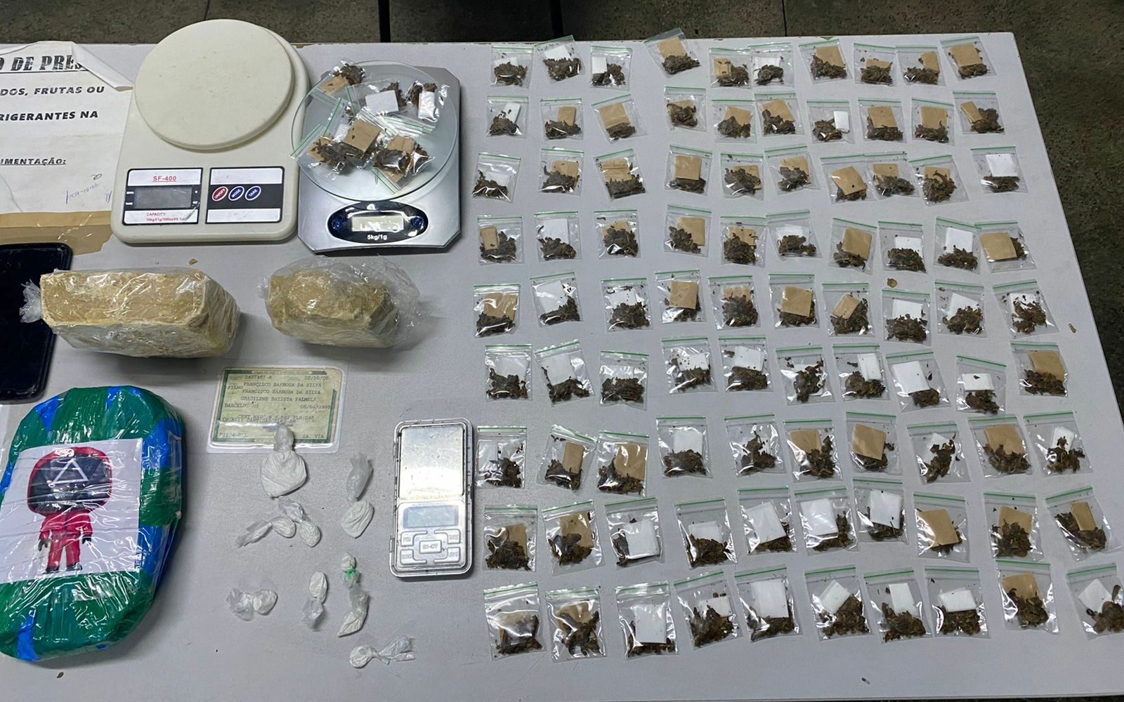 Ainda segundo o titular, os policiais entraram no imóvel e prenderam Francisco, em flagrante. Durante revista foram encontradas nove trouxinhas de cocaína, duas pedras grandes de oxi e três balanças de precisão.
