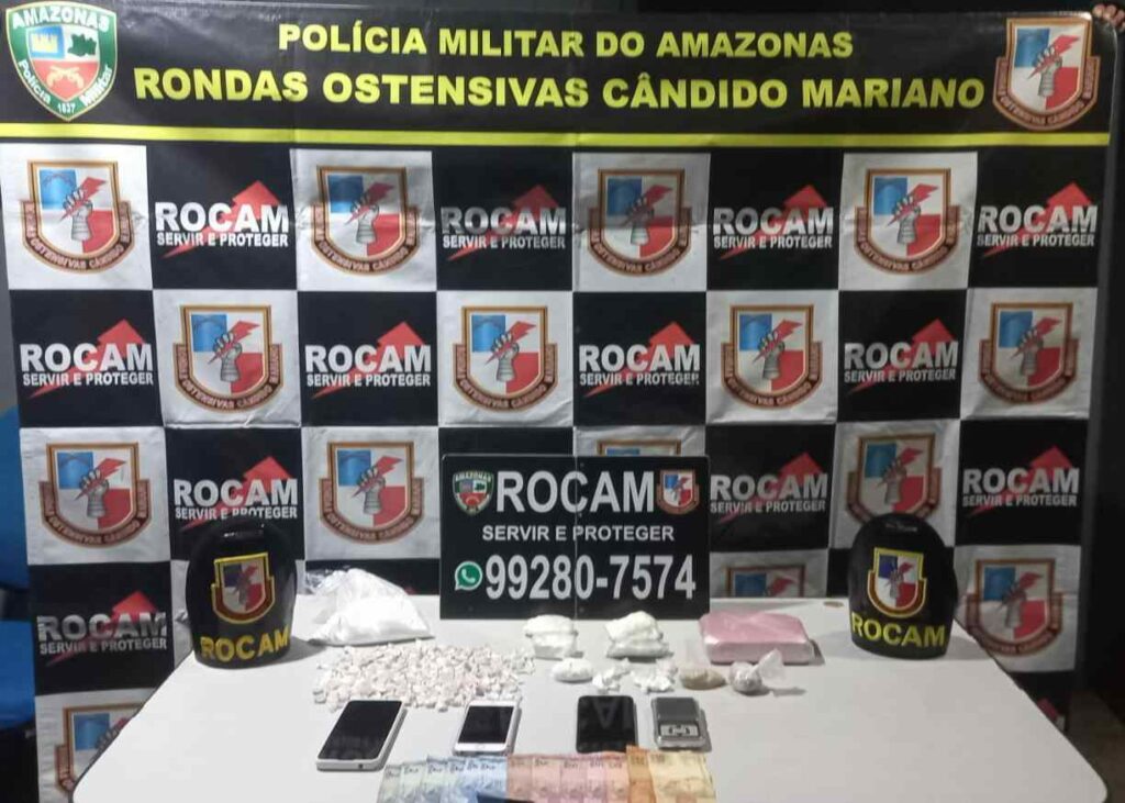 Policiais militares das Rondas Ostensivas Cândido Mariano (Rocam) prenderam, na noite de segunda-feira (21/02), quatro homens, de 20, 22, 29 e 33 anos, por porte ilegal de arma de fogo e tráfico de entorpecentes, em diferentes ações nas zonas leste, norte e centro-sul da capital amazonense. Em uma das ocorrências, foram apreendidos dois adolescentes, de 16 e 17 anos.