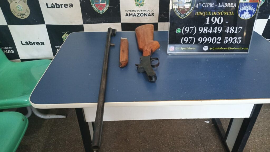 A Polícia Militar do Amazonas (PMAM), por meio da 4ª Companhia Independente de Polícia Militar (CIPM), apreendeu uma arma de fogo de fabricação caseira, durante ocorrência de violência doméstica contra uma mulher de 22 anos. A ação foi registrada nesta quarta-feira (12/06), no município de Lábrea (a 702 quilômetros de Manaus).