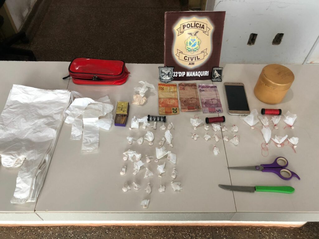 A Polícia Civil do Amazonas (PC-AM), por meio da 33ª Delegacia Interativa Polícia (DIP) de Manaquiri (a 60 quilômetros de Manaus), prendeu em flagrante, no sábado (18/09), por volta do meio-dia, Daniel Albuquerque da Silva, 22, pelo crime de tráfico de drogas. A prisão aconteceu na rua da Olaria, bairro Ajuricaba, naquele município.