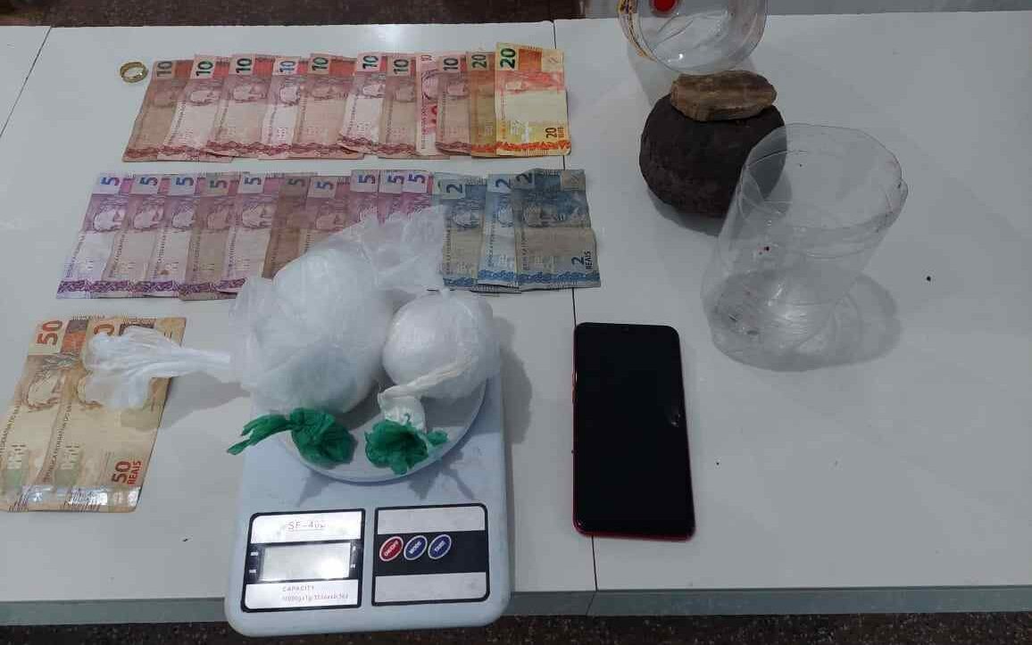 Ao todo, foram apreendidos porções de cocaína, pedras de oxi, e material para preparo e embalo das drogas, além de um aparelho celular e R$ 288 em espécie.