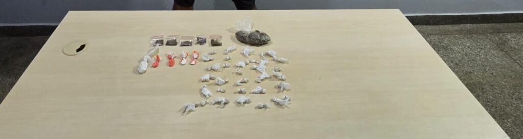 Uma das ocorrências, registrada pela equipe da Força Tática, prendeu uma mulher, de 34 anos, durante patrulhamento, na comunidade Rei Davi, bairro Nova cidade. De acordo com os PMs, a mulher estava em um bar daquela região, quando tentou esconder uma pochete, contendo 22 porções de oxi, 18 de cocaína, 32 cigarros de maconha e uma balança de precisão.