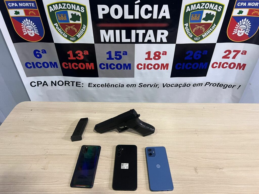 A Polícia Militar do Amazonas (PMAM), por meio da 27ª Companhia Interativa Comunitária (Cicom), prendeu dois homens, de idades não informadas, suspeitos de envolvimento em um roubo, na manhã desta quarta-feira (09/10). A ação policial aconteceu no bairro Novo Aleixo, zona norte de Manaus.