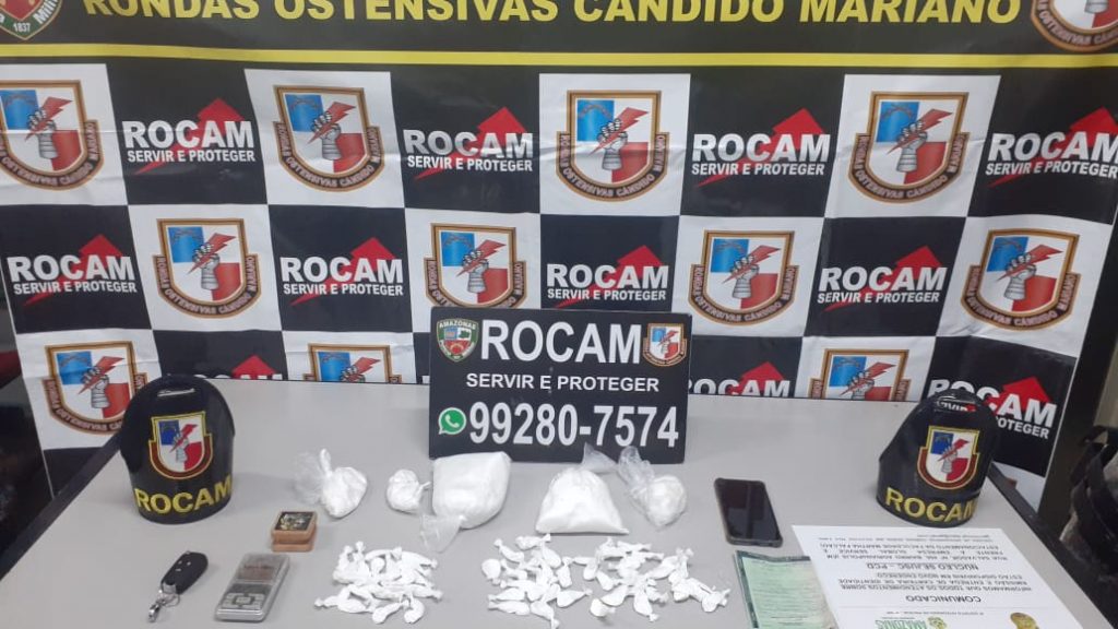 No bairro Alvorada, zona centro-oeste, um homem de 23 anos foi preso por militares das Rondas Ostensivas Cândido Mariano (Rocam) com porções de entorpecentes, incluindo oxi, cocaína e maconha, quatro papelotes supostamente de droga sintética, além de duas balanças de precisão, R$ 78 em espécie e um aparelho celular.