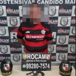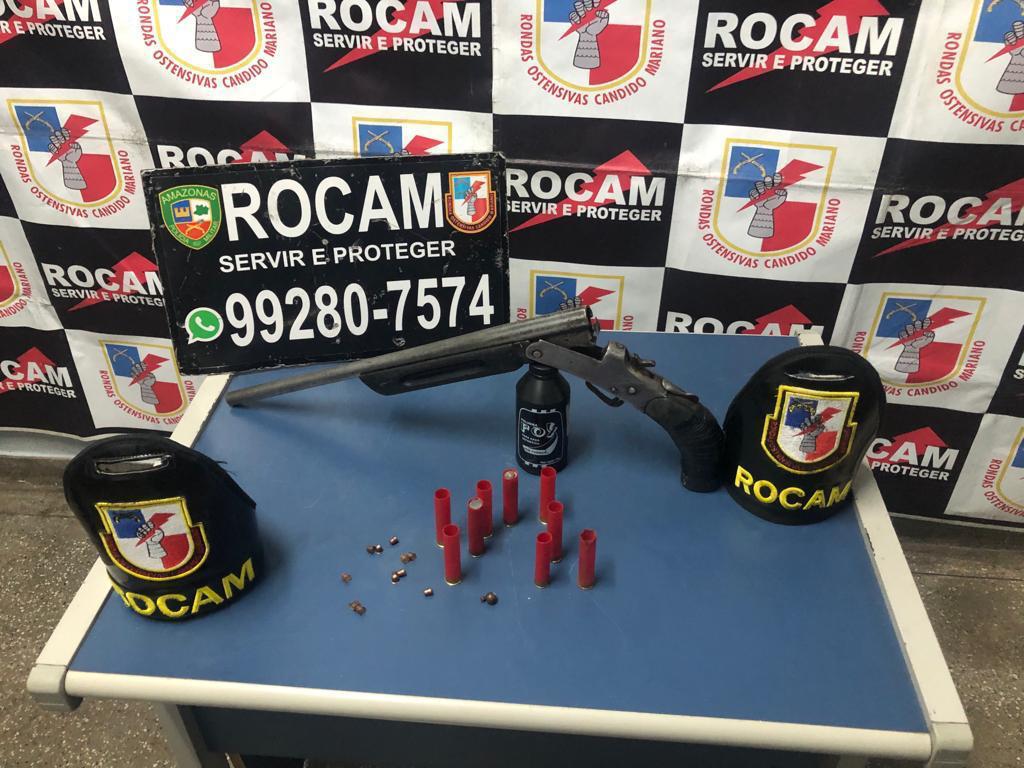 Policiais das Rondas Ostensivas Cândido Mariano (Rocam) prenderam um homem de 25 anos, na rua Dois, do bairro Francisca Mendes. Com ele, foi encontrada uma espingarda de calibre 28. O infrator foi encaminhado ao 6° Distrito Integrado de Polícia (DIP).