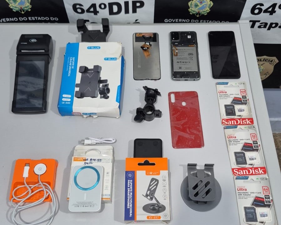 “Soubemos que ele foi detido por populares e a equipe policial foi ao local para efetuar a sua prisão. Com ele, estavam dois de quatro aparelhos furtados, uma máquina de pagamentos e alguns acessórios para celular, totalizando aproximadamente R$ 3 mil em objetos recuperados, que foram devolvidos aos donos dos estabelecimentos”, explicou a delegada.