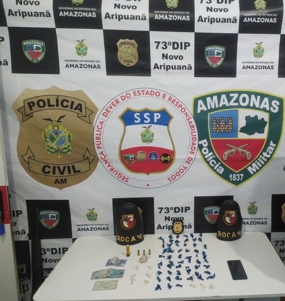 Em Novo Aripuanã, PC-AM e PMAM prendem homem com drogas, munições e dinheiro