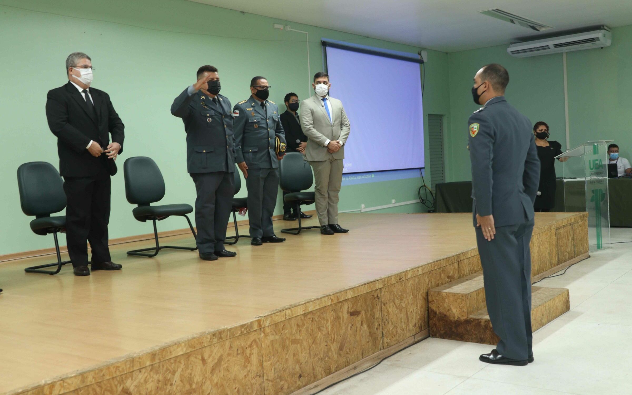 Estiveram presentes também o chefe de Estado Maior Geral (ChEMG), coronel PM Ronaldo Brito da Silva; o vice-reitor da UEA, professor mestre Cleto Cavalcante de Souza Leal; o diretor-geral do Iesp, coronel PM Audo Albuquerque da Costa; o coordenador-geral do Curso em Especialização em Gestão Pública Aplicada à Segurança, André Luiz Nunes Zogahib; entre outras autoridades.