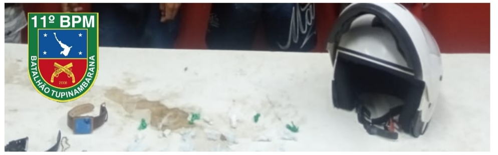 Durante abordagem e busca pessoal, foram encontradas com os suspeitos 34 trouxinhas de substância entorpecente com aspecto de oxi.