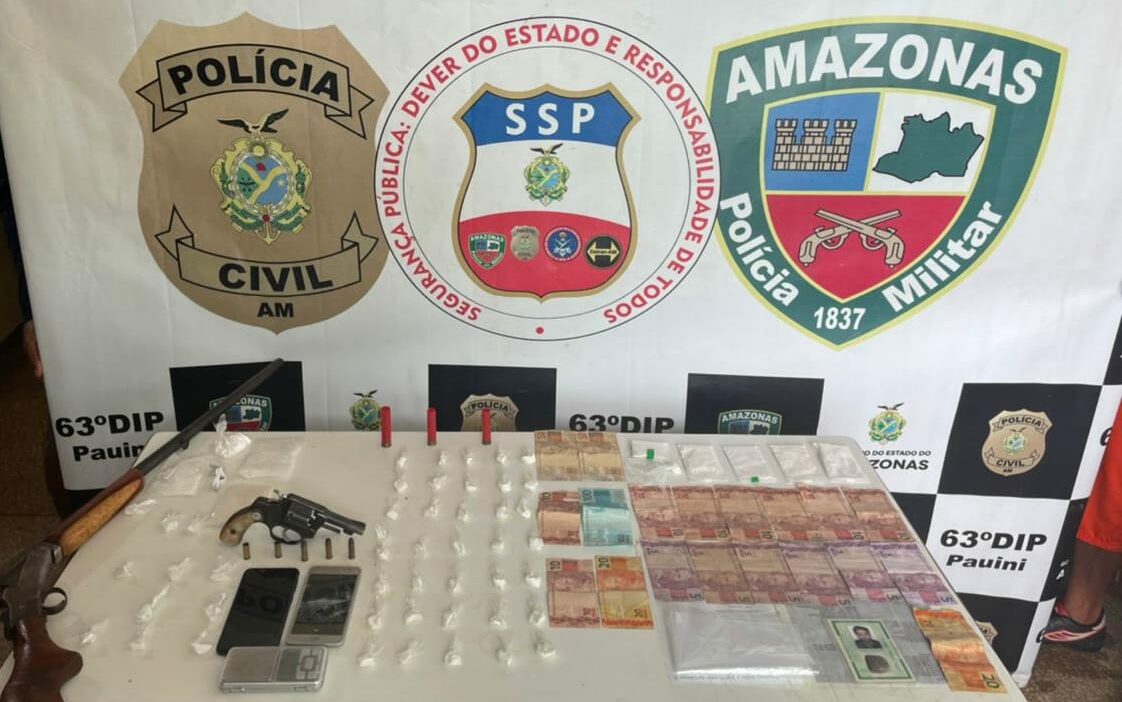 Durante as ações policiais, foram apreendidas duas armas de fogo, munições, 56 porções de cocaína, três porções de maconha, quatro celulares, sendo que um deles já foi devolvido ao dono; materiais para embalo e refino de drogas, além de R$ 350 em espécie.