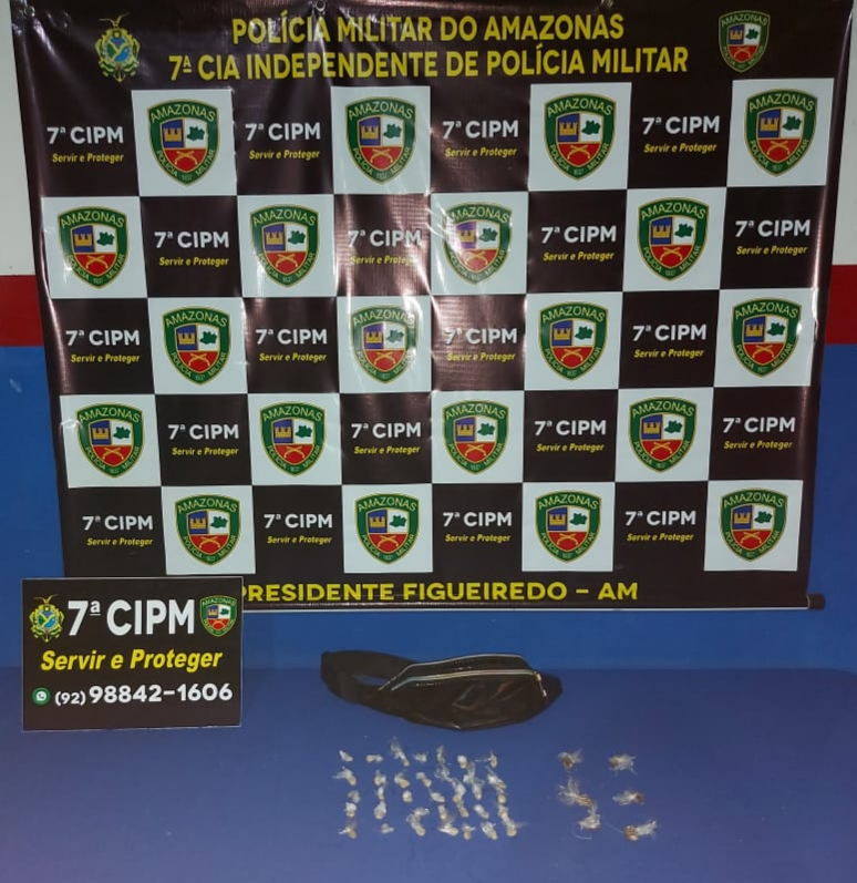 Policiais militares da 7ª Companhia Independente de Polícia Militar (7ª CIPM) prenderam um homem e apreenderam um adolescente, de 14 anos, em Presidente Figueiredo, neste domingo (04/07). Eles são suspeitos de envolvimento com o tráfico de drogas no município distante 117 quilômetros de Manaus.