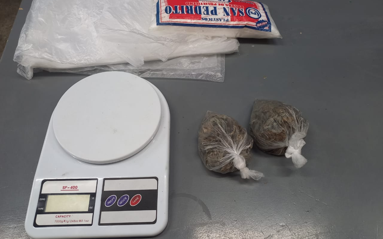 Indagados sobre a posse e onde haviam adquirido o material ilícito, informaram ter comprado de uma mulher, de 22 anos, no bairro Guadalupe. Os policiais, com apoio da equipe da viatura 0617, foram até o endereço indicado e encontraram a mulher. Após as buscas no imóvel, localizaram uma porção de substância com aspecto de maconha e uma balança digital.