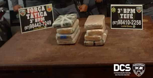 Policiais militares da Força Tática e do 3º Batalhão de Polícia Militar (BPM) de Tefé apreenderam, na manhã da última terça-feira (08/12), oito tabletes de substância entorpecente, supostamente maconha do tipo skunk, no porto daquele município, localizado a 523 quilômetros de Manaus.