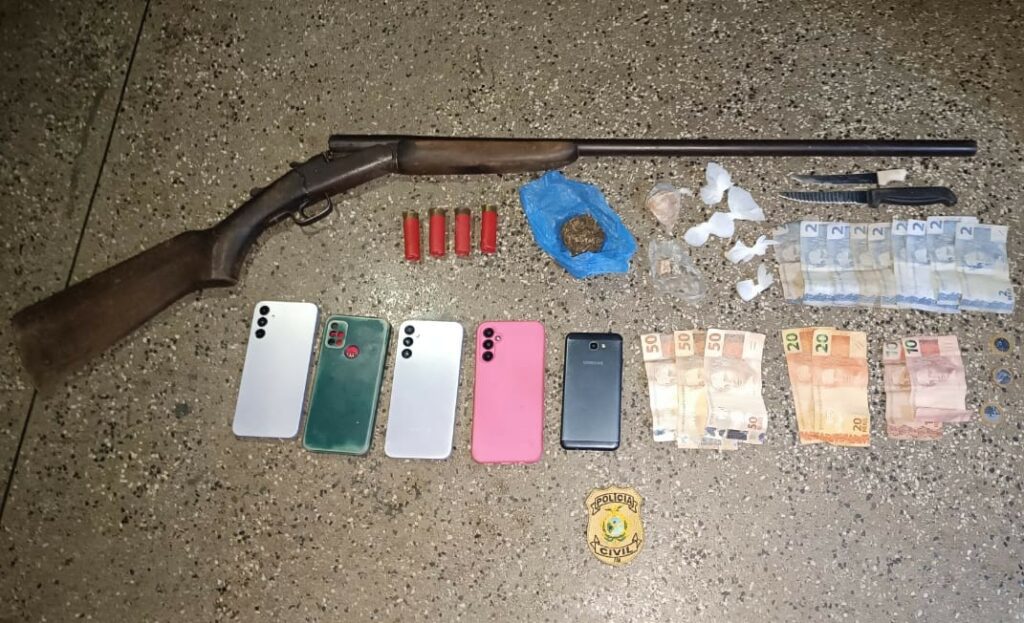 “Nos dirigimos às residências nos bairros Barreiro e Centro, apontadas como de Gabriel, Jadson e Jamilson, e realizamos as prisões e apreensões de quatro celulares, uma espingarda, quatro munições intactas e porções de entorpecentes que estavam nos locais”, contou o delegado.