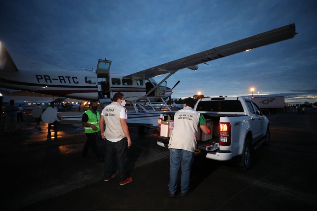 Estado com o maior percentual de vacinados entre as unidades da federação (mais de 8%), o Amazonas tem contado com o apoio logístico da Secretaria da Casa Militar para avançar com a imunização da população do interior, abrangendo, principalmente, localidades mais distantes da capital. Até agora, pelo menos 30 cidades receberam, da equipe do Departamento de Aviação do órgão, as doses necessárias para a execução do Plano Nacional de Imunização (PNI), traçado pelo Ministério da Saúde (MS) e coordenado no Amazonas pela Fundação de Vigilância em Saúde (FVS-AM).