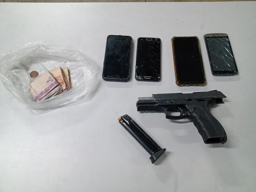 A equipe policial, por volta das 17h15, foi acionada por populares, que relataram que um indivíduo tinha sido imobilizado, por ter cometido roubo a clientes de uma lanchonete. Os policiais foram ao local e após a revista pessoal, foi encontrado com o suspeito uma pistola Marca Taurus, calibre 380, modelo 838, numeração KIW89938, com carregador; além de 13 munições não deflagradas; quatro aparelhos celulares, sendo três da marca Samsung modelos J2 cor preta, A10 cor azul, J5 cor cinza, e um LG D337 cor cinza; além de uma quantia em dinheiro de R$ 226. No estabelecimento, três vítimas, entre 23 e 63 anos, reconheceram o indivíduo como autor do roubo.