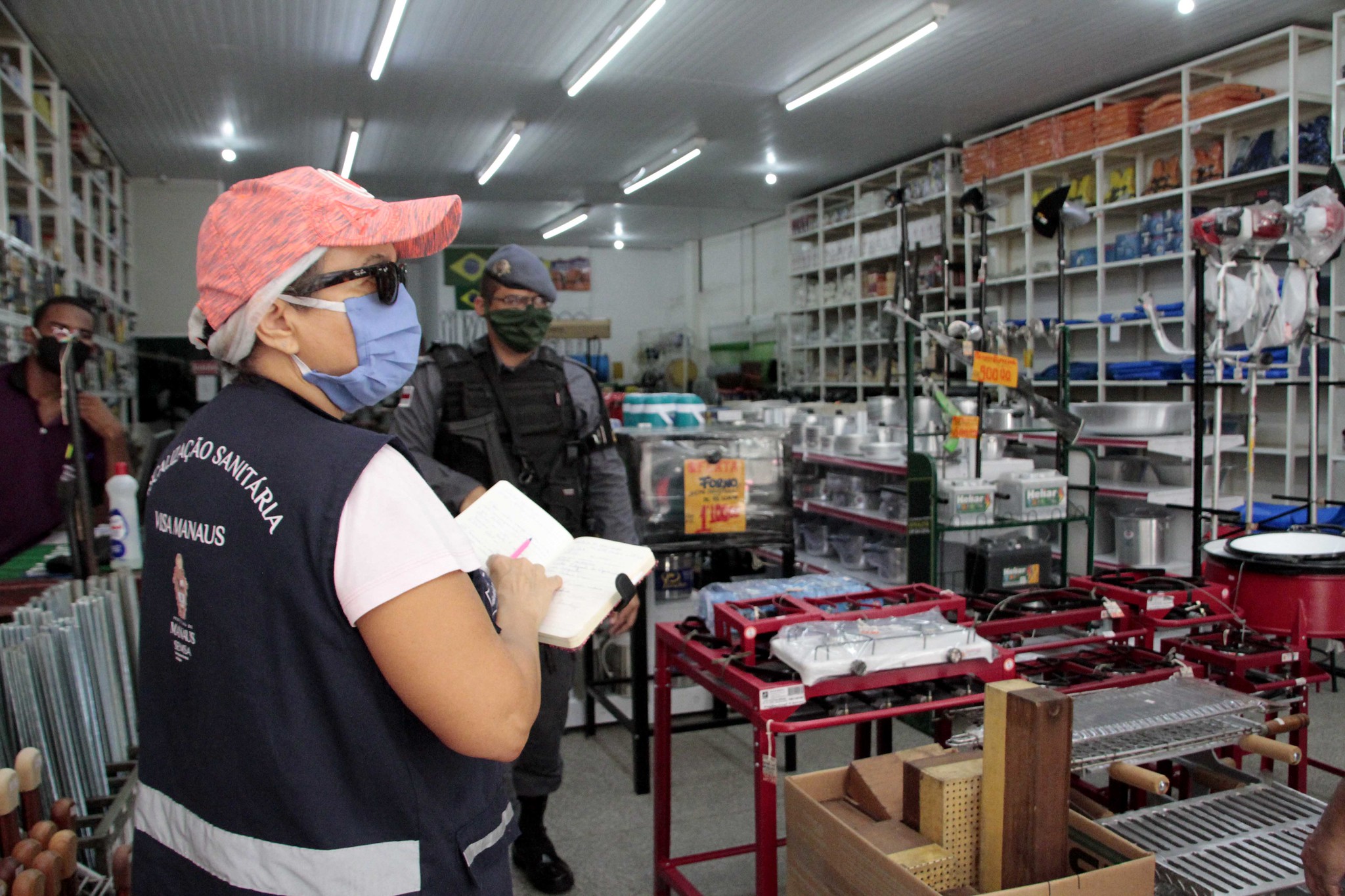“A Visa Manaus em conjunto com a Polícia Militar está aumentando o número de ações para inibir o funcionamento dos estabelecimentos que não são considerados essenciais. O funcionamento deles não está permitido nem pelo decreto municipal, nem pelo o estadual. Essas lojas deverão permanecer fechadas, e serão interditadas, caso elas venham a funcionar”, informa o fiscal da Visa Manaus, Augusto Kluczkovski.