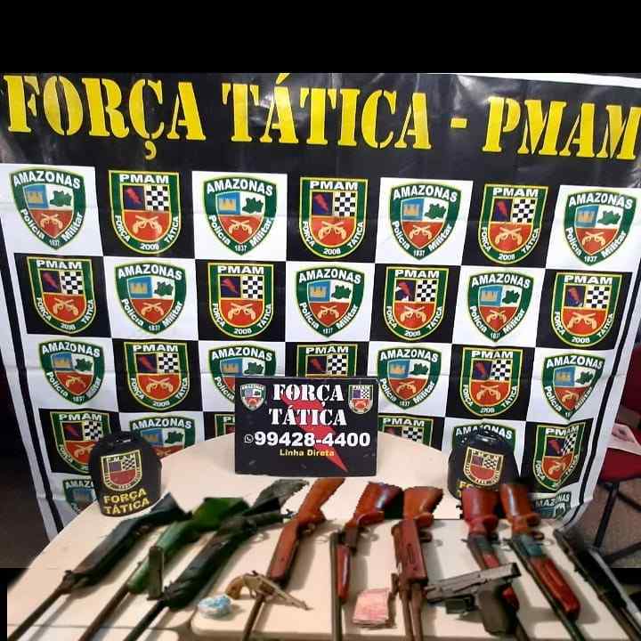 Policiais militares da Força Tática, durante ações distintas da Operação Hórus, apreenderam, entre a tarde e noite de domingo (30/05), 11 armas de fogo de vários calibres em posse de um homem de 24 anos em Benjamin Constant (a 1.121 quilômetros de Manaus) e um revólver com outro de 23 anos, na zona sul da capital amazonense.