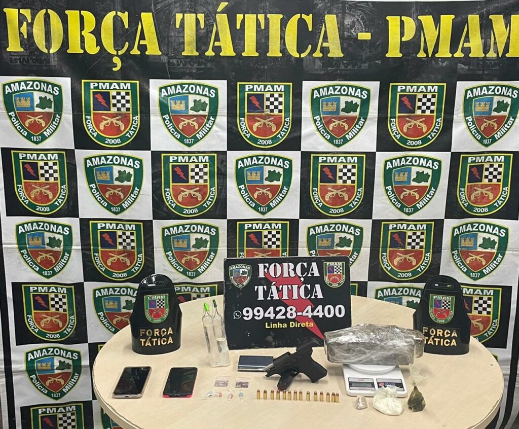 Policiais militares da Força Tática, em ações distintas, detiveram na segunda-feira (12/07), um casal, de 27 e 19 anos, com arma e drogas, e nesta madrugada (13/07), detiveram um homem com revólver dentro de veículo, ambos na zona leste de Manaus.
