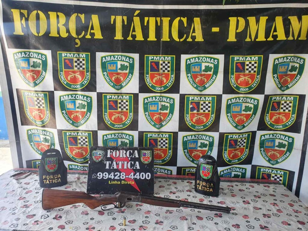 Em Iranduba, por volta das 11h, uma equipe da Força Tática deteve dois adolescentes em posse de um rifle, após abordagem na rua Arara, no bairro Novo Amanhecer, durante patrulhamento ostensivo dentro da operação Cidade Mais Segura, da Secretaria de Segurança Pública (SSP-AM). Ao notar a presença policial, os dois ainda tentaram fugir, mas foram capturados.