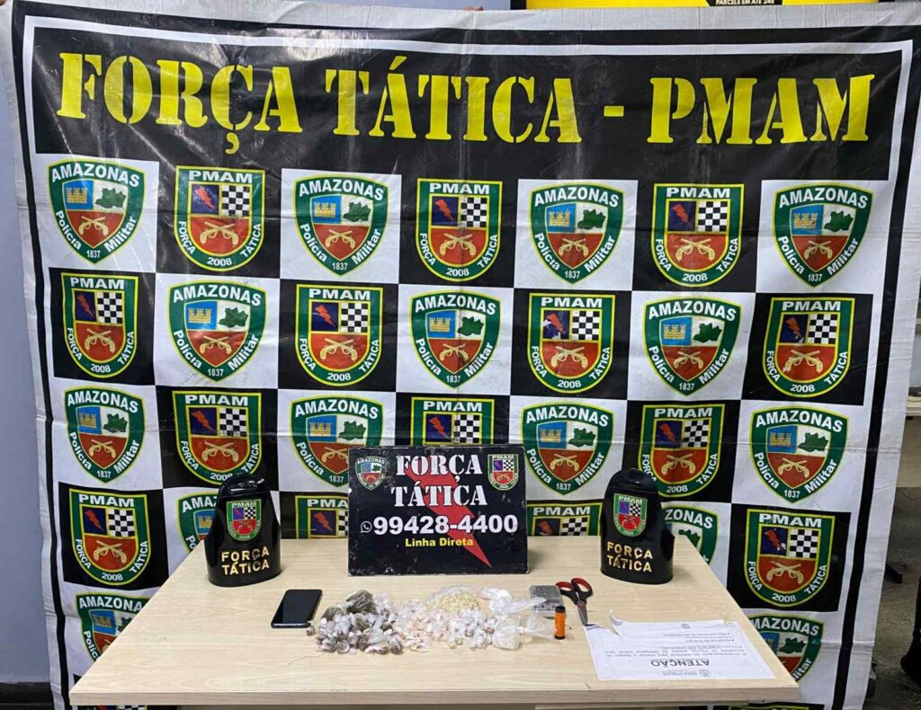 Em outra ação, em Manaus, por volta das 18h15, policiais militares da Força Tática detiveram um jovem de 19 anos por tráfico de drogas, na avenida Grande Circular 2, no bairro Cidade de Deus, na zona leste, após denúncia informando sobre suposto preparo e comércio de entorpecentes que acontecia em uma casa no local.