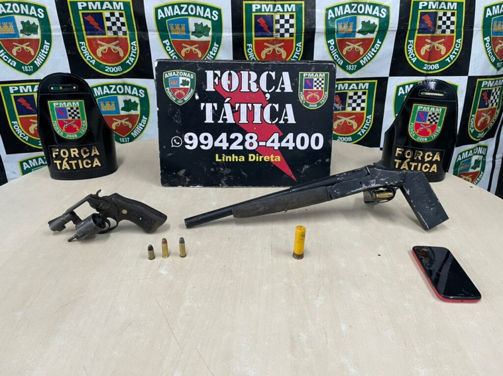 Policiais militares da Força Tática da Polícia Militar do Amazonas (PMAM) detiveram, por volta das 13h30, deste domingo (1º/08), um homem, de 36 anos, após ser flagrado com armas de fogo e munições na alameda Padre Francisco, terceira etapa do bairro Coroado, zona leste de Manaus.