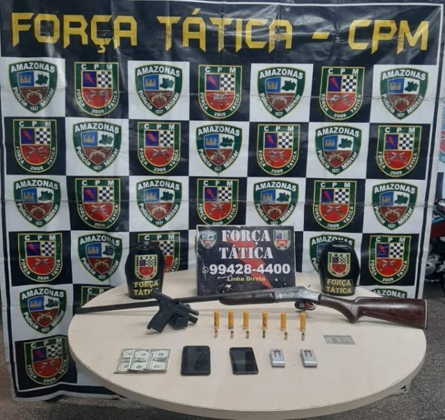 Policiais militares da Força Tática, na noite de domingo (08/11) detiveram um homem de 29 anos, foragido da justiça, que estava em posse ilegal de armas de fogo, em um sítio do ramal Brasileirinho, na zona leste da capital.