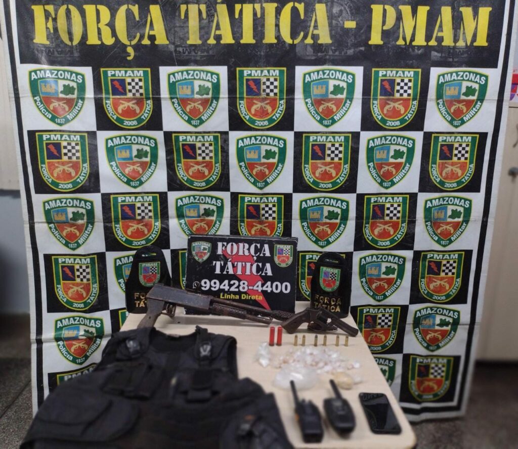 Policiais militares da Força Tática prenderam, na sexta-feira (12/11), um homem, 21, por posse de entorpecentes e arma de fogo ilegal, no Novo Aleixo, zona norte da capital.