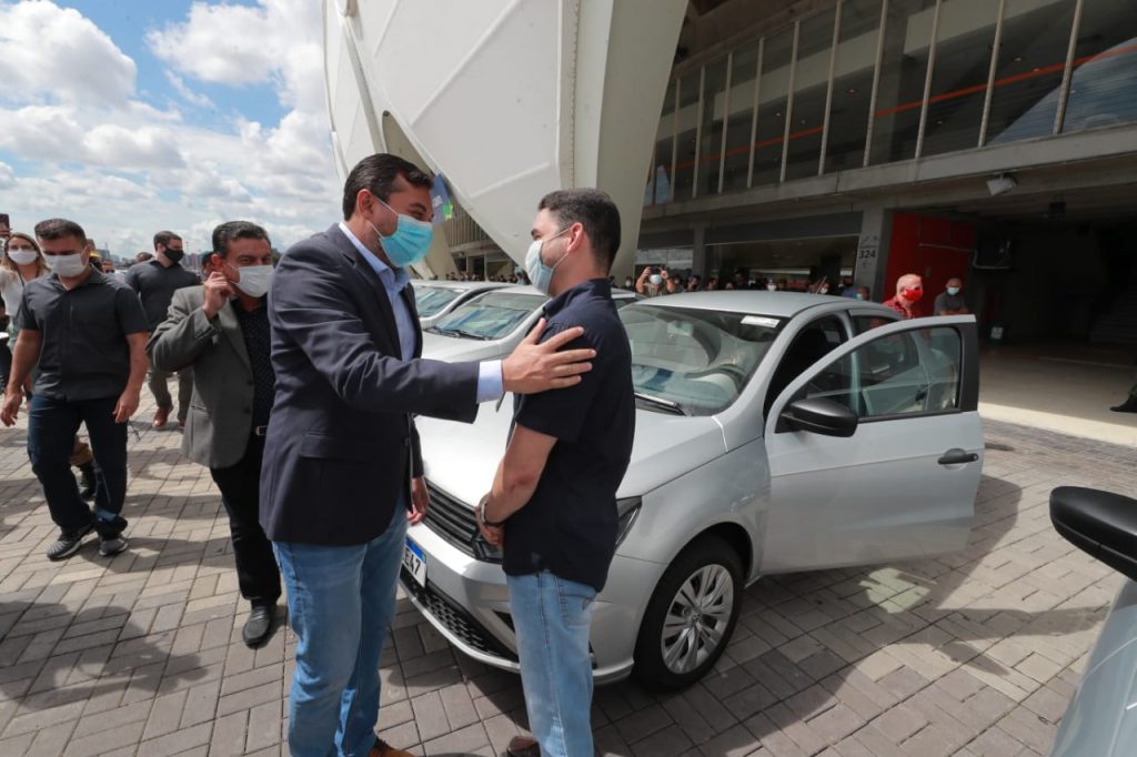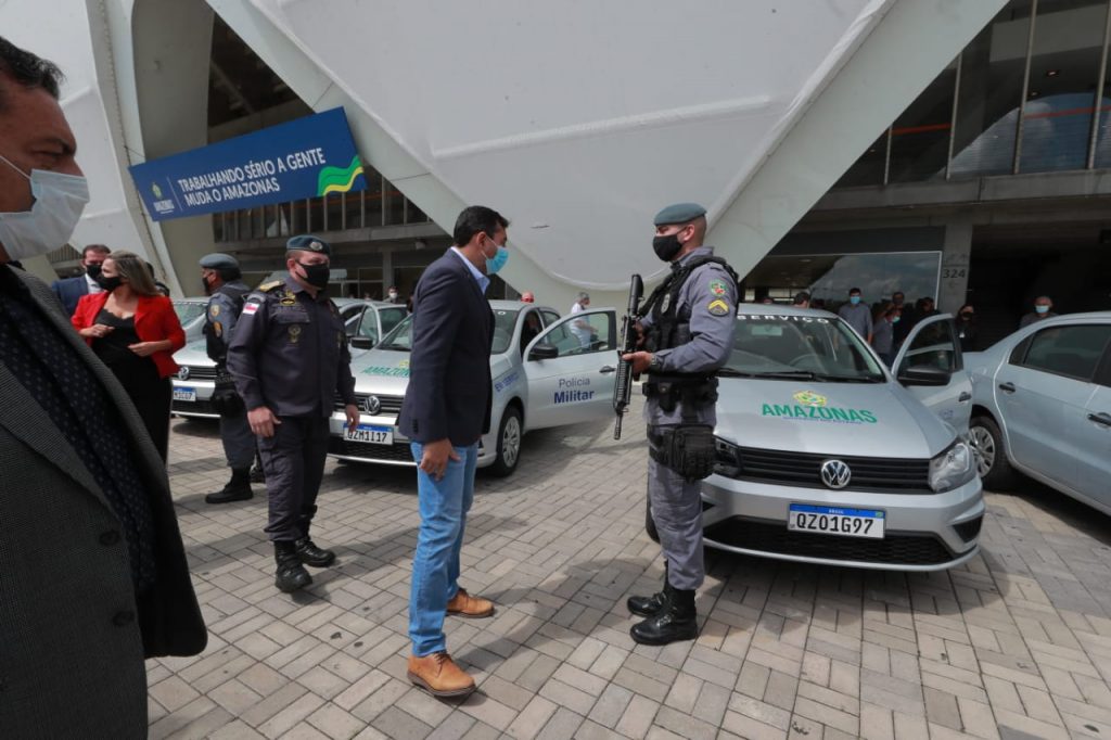 O governador Wilson Lima entregou, nesta segunda-feira (23/11), no Podium da Arena da Amazônia, 61 veículos para renovação de parte da frota das Polícias Civil e Militar do Amazonas. As viaturas são destinadas ao serviço policial em 27 cidades do estado, incluindo Manaus. O investimento é da ordem de R$ 2 milhões, por meio da Secretaria de Segurança Pública (SSP-AM).
