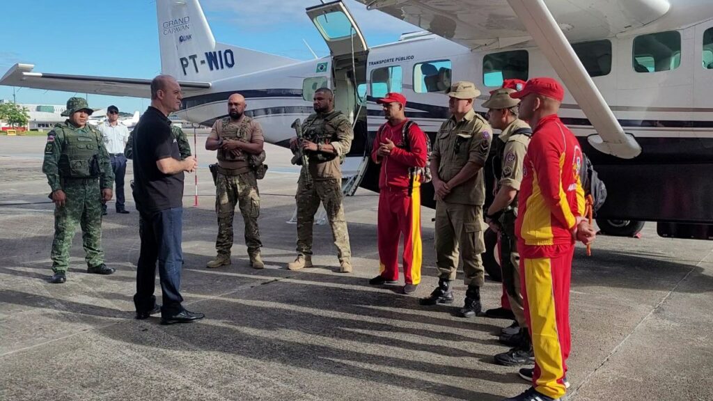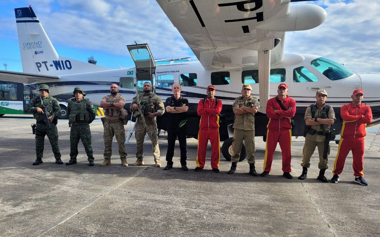 Na manhã de hoje, a SSP-AM enviou uma equipe de nove agentes, entre dois policiais militares do Batalhão de Policiamento Ambiental (BPAmb), da Polícia Militar do Amazonas (PMAM), dois policiais civis da Coordenadoria de Operações e Recursos Especiais do Amazonas (Core-AM), além de cinco militares do Corpo de Bombeiros Militar do Estado do Amazonas (CBMAM).
