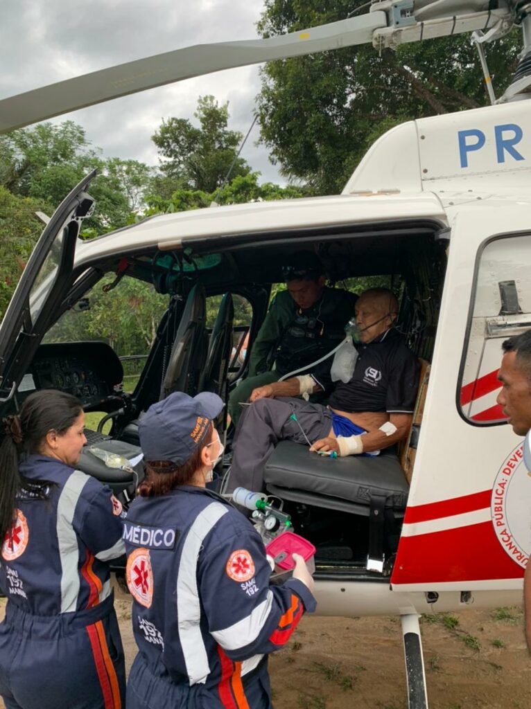 Além da equipe aérea do governo do Amazonas, a operação de resgate aeromédico mobilizou o Samu, equipe médica do Hospital e a Polícia Militar, que atuou para o fechamento do trânsito. Rogério Gonçalves da Silva, 82, é paciente cardíaco grave, tem diabetes e é hipertenso. Segundo a Secretaria de Estado de Saúde (SES-AM), ele recebeu todos os cuidados na emergência do 28 de Agosto para estabilização do quadro de infarto, passando por procedimentos como eletrocardiograma, ultrassom abdominal e doppler. Ele está em ventilação não invasiva.