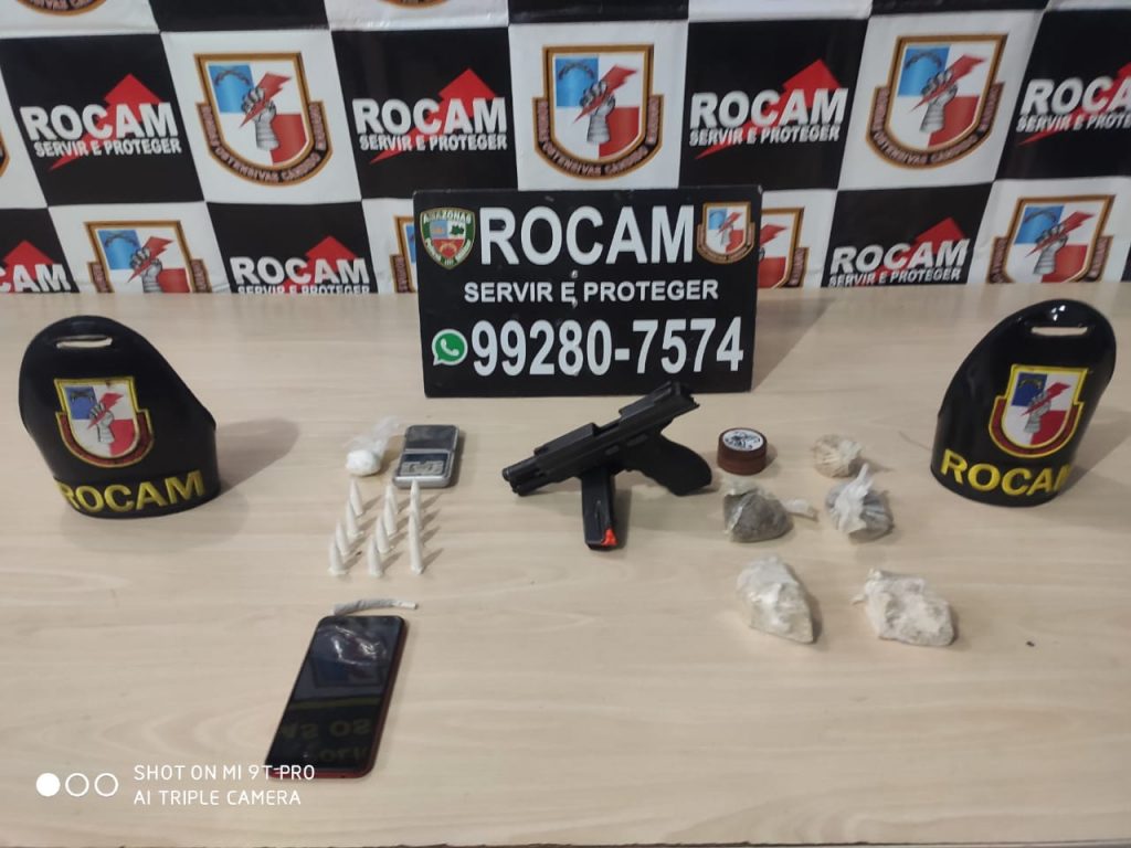 A 3ª Companhia de Motocicletas Rondas Ostensivas Cândido Mariano (Rocam Motos) prendeu na tarde desta quarta-feira (09/09) um homem de 27 anos, na rua Uaimiti, bairro Novo Israel, zona norte, por tráfico de drogas e porte ilegal de arma de fogo. Com o suspeito, foi encontrada uma pistola calibre 380 milímetros, além de 12 pinos de cocaína, porções de oxi, maconha e uma balança de precisão.