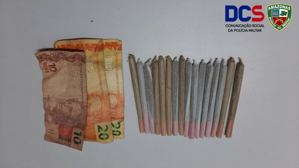 Durante patrulhamento ostensivo em cumprimento à Operação “Rio Madeira”, por volta das 20h, a equipe da viatura 6016 efetuou abordagem a um homem em atitude suspeita na rua Coronel Gonzaga. Com ele foram encontrados 16 cigarros de maconha tipo skunk e R$ 50 em espécie.