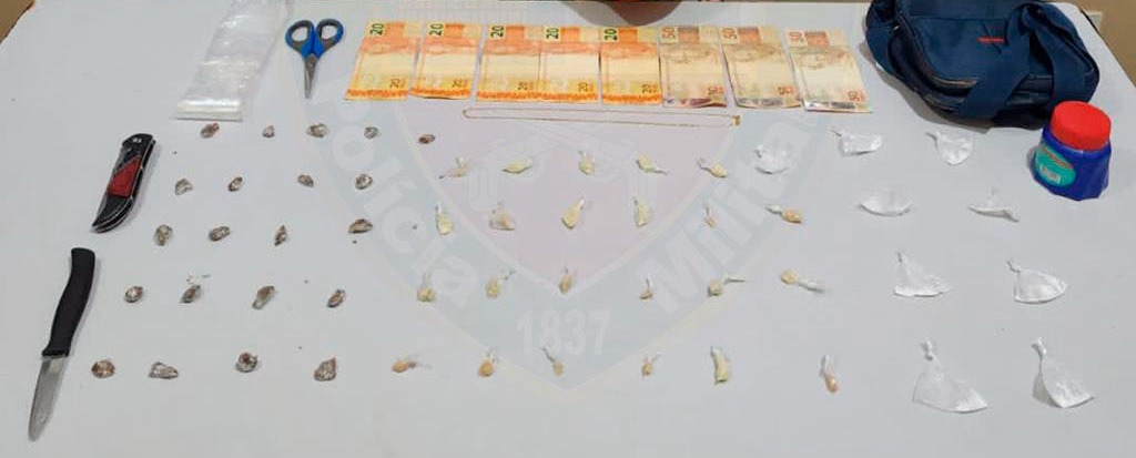 Com base nas informações, os policiais foram ao local indicado, onde abordaram o suspeito e apreenderam R$ 190. À polícia, ele confirmou a comercialização e apontou o local da fabricação da droga. No local, foram encontradas 36 trouxinhas de cocaína, uma porção de cocaína, uma balança de precisão, R$ 1.809 em espécie, além de materiais utilizados para embalar o entorpecente.