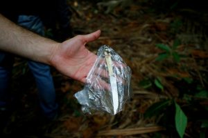 Durante as buscas de hoje, foram encontradas uma ossada humana e tufos de cabelos que podem ser de corpos encontrados no local ou de novas vítimas. Os policiais também localizaram objetos que, possivelmente, seriam utilizados em ações criminosas. Todo o material foi colhido e armazenado por peritos do Departamento de Polícia Técnico Científica (DPTC) para análise.