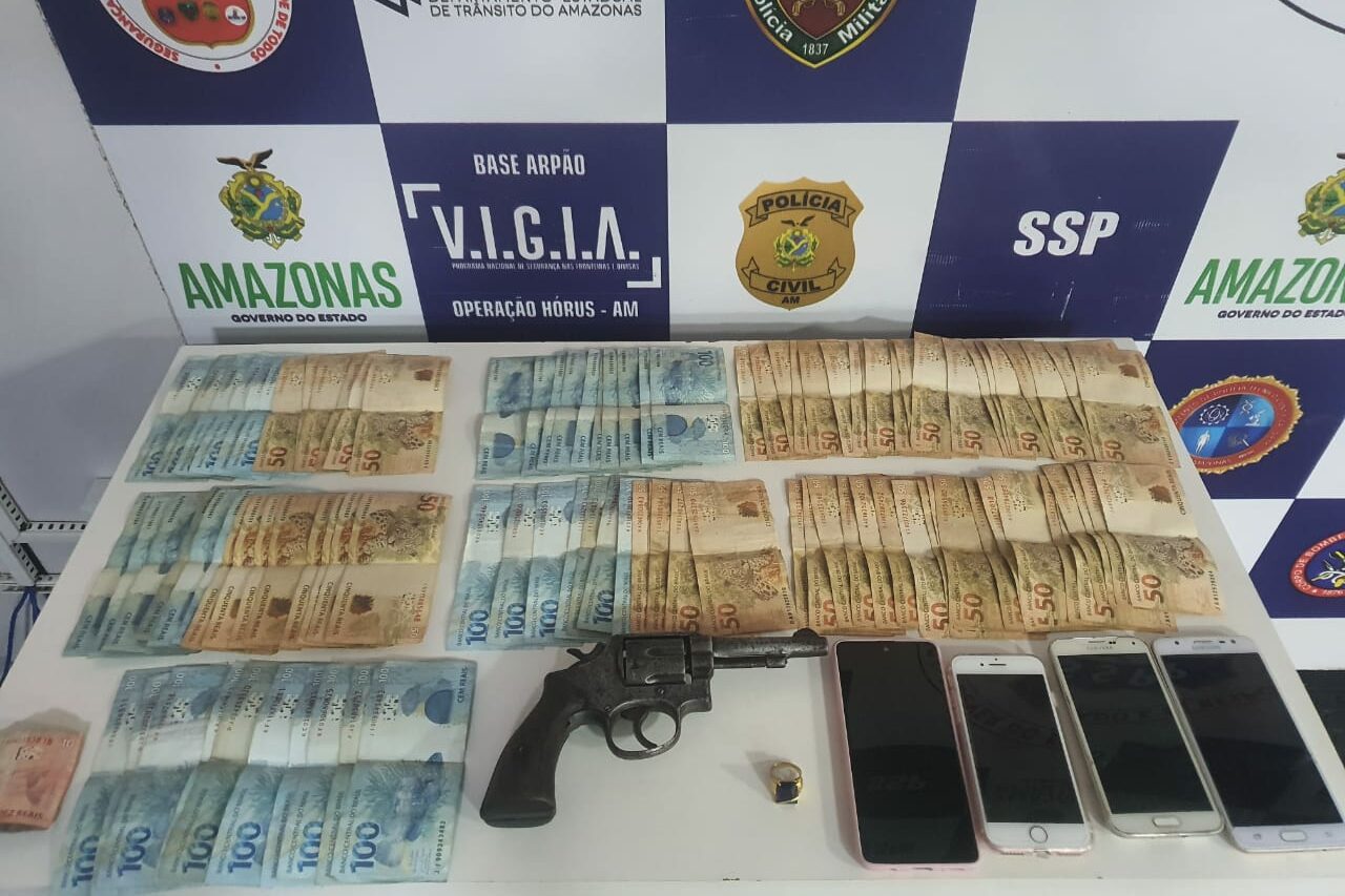 A prisão em flagrante ocorreu durante a revista feita pelos policiais na embarcação “Rayuga”, oriunda do município de Japurá com destino a Coari (a 363 quilômetros de Manaus), por volta das 0h30. Durante as buscas, uma das passageiras demonstrou incômodo com a presença dos agentes. Na abordagem pessoal, foi encontrada com a suspeita uma arma de fogo calibre 38 e R$ 7 mil em espécie.