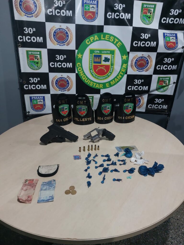 No bairro Jorge Teixeira, zona leste de Manaus, policiais militares da 30ª Companhia Interativa Comunitária (Cicom) prenderam um homem, de 22 anos, pelo crime de porte ilegal de arma de fogo. Em posse do mesmo foi apreendido um revólver, de calibre 32 e quatro munições intactas. O homem foi conduzido ao 14° Distrito Integrado de Polícia (DIP).