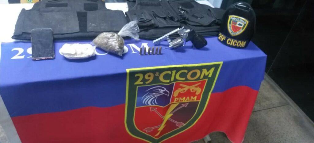 No bairro Petrópolis, zona leste de Manaus, policiais militares da 29ª Companhia Interativa Comunitária (Cicom) prenderam um homem, de 38 anos, e uma mulher, de 35 anos, após uma denúncia anônima, que o mesmo estaria portando arma de fogo e drogas, em um motel de Manaus. O suspeito é apontado como chefe do tráfico de drogas, do bairro Mauazinho.