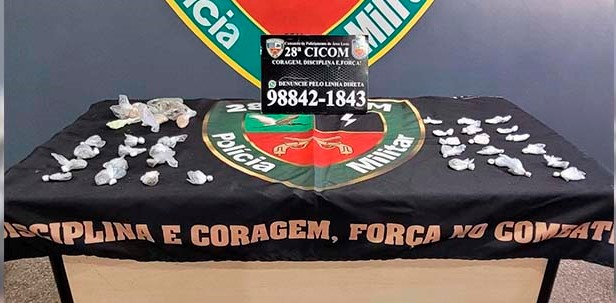 Policiais militares da 28ª Companhia Interativa Comunitária (Cicom) prenderam um homem de 34 anos pelo crime de tráfico de drogas. A abordagem aconteceu no beco Francisca Mendes, bairro Colônia Antônio Aleixo, zona leste de Manaus. Com o homem, a guarnição apreendeu uma bolsa com três porções médias de pedra de oxi, e uma porção média e 21 trouxinhas de maconha. O suspeito foi encaminhado ao 14º Distrito Integrado de Polícia (DIP).