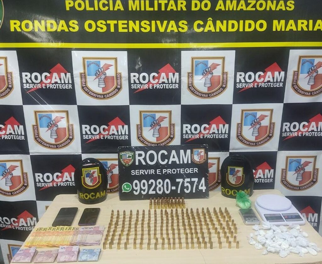 Na madrugada desta quarta-feira, dois homens, de 26 e 29 anos, foram presos pelos militares das Rondas Ostensivas Cândido Mariano (Rocam), pelos crimes tráfico de drogas e porte ilegal de munição no bairro Novo Aleixo, zona norte da capital. Com a dupla foram encontradas 60 munições intactas calibre PT40, 207 munições de calibre 9 milímetros intactas, uma porção média de oxi, 27 porções de cocaína, duas balanças digitais, dois aparelhos celulares e a quantia de R$ 340 em espécie. Os envolvidos foram levados para o 6º Distrito Integrado de Polícia (DIP).