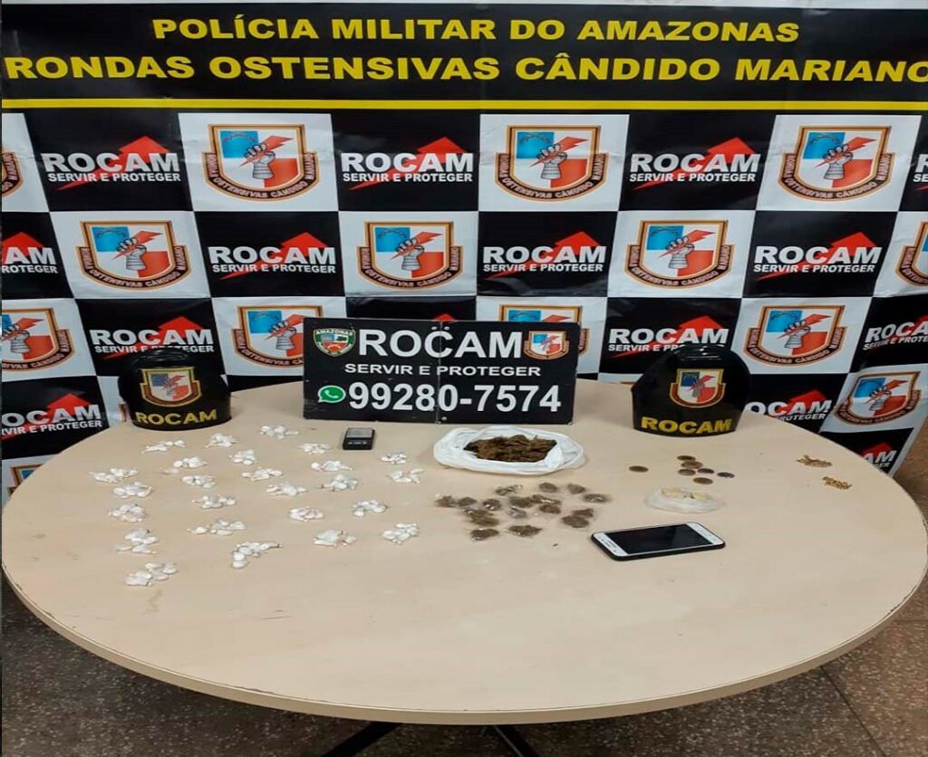 Três homens, sendo dois de 18 anos e um de 27 anos, foram presos em flagrante por policiais das Rondas Ostensivas Cândido Mariano (Rocam) no bairro Tancredo Neves, zona leste capital, por tráfico de drogas. Em posse do trio, a equipe policial encontrou 149 pequenas porções de cocaína e maconha. Dois dos infratores já têm passagem pela polícia por roubo. Eles foram conduzidos ao 14º Distrito Integrado de Polícia (DIP).