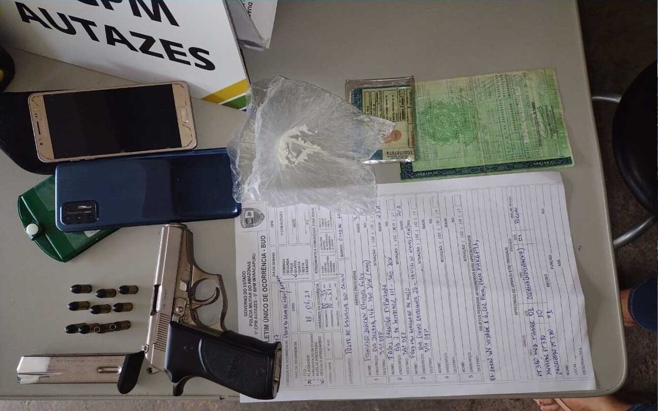 No município de Autazes (a 113 quilômetros de Manaus), policiais militares prenderam três homens, com idades entre 20 e 31 anos, com armas e entorpecentes. A equipe recebeu uma denúncia informando que os suspeitos estavam conduzindo um veículo em alta velocidade, portando armas e drogas.